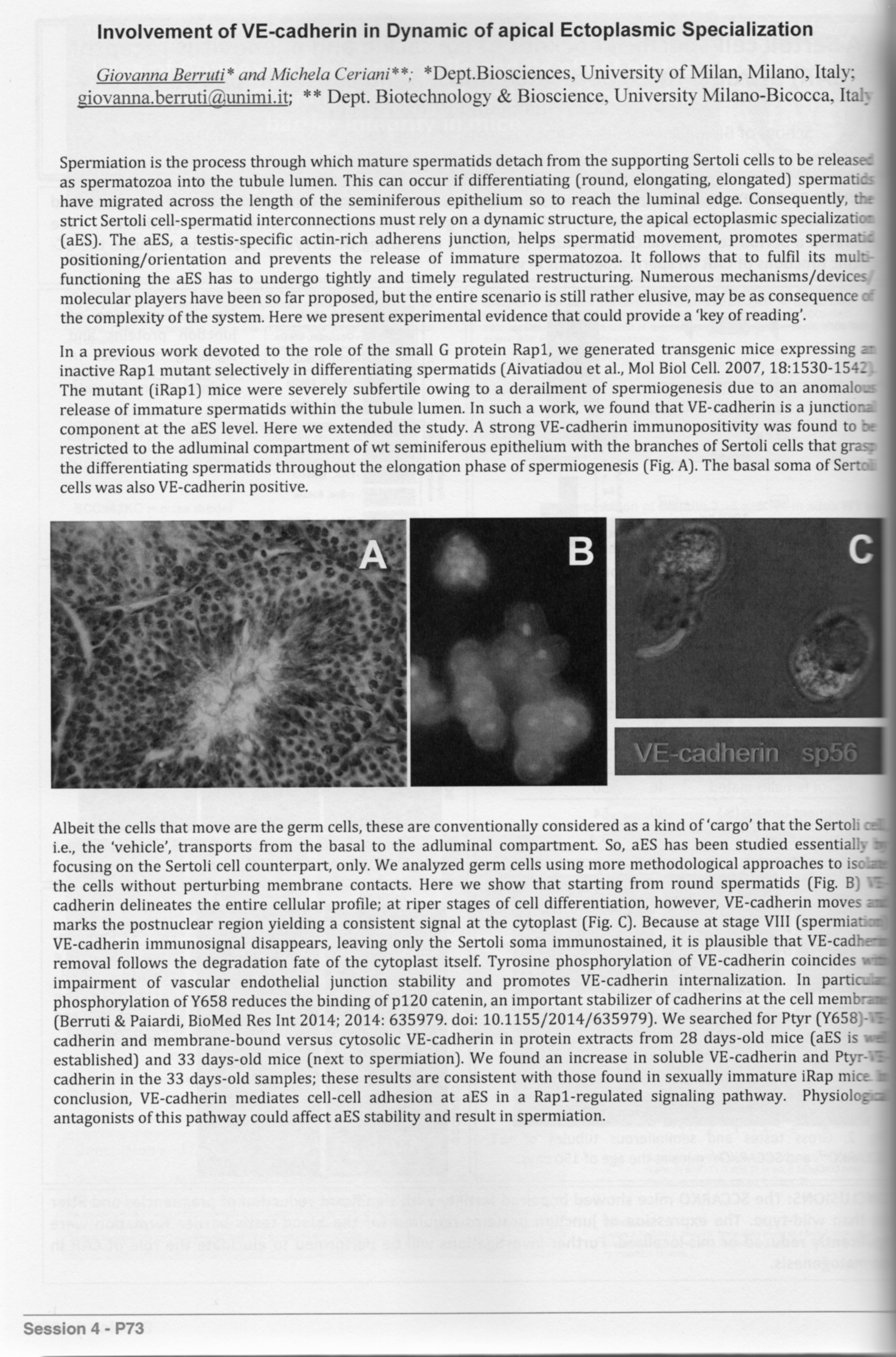 Berruti, G., Ceriani, M. (2016). Involvement of VE-cadherin in dynamic of apical ectoplasmic specialization. Intervento presentato a: 19th European Testis Workshop; European workshop on the molecular and cellular endocrinology of the testis, Saint-Malo, France.