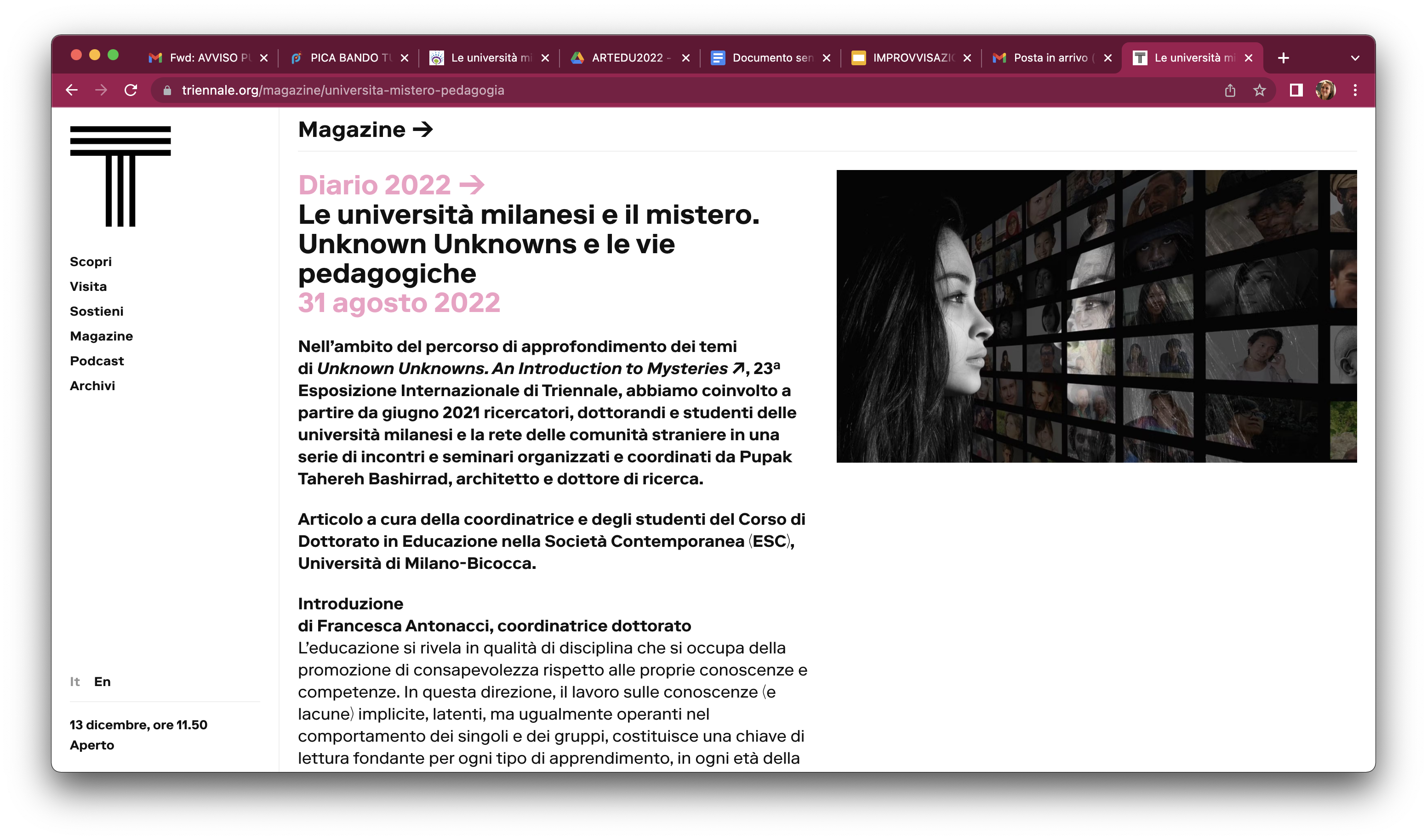 Antonacci, F., Azadi, H., Corbella, L., Cuppari, A., Maiorano, A., Neri, E., et al. (2022). Le università milanesi e il mistero. Unknown Unknowns e le vie pedagogiche [Sito web].