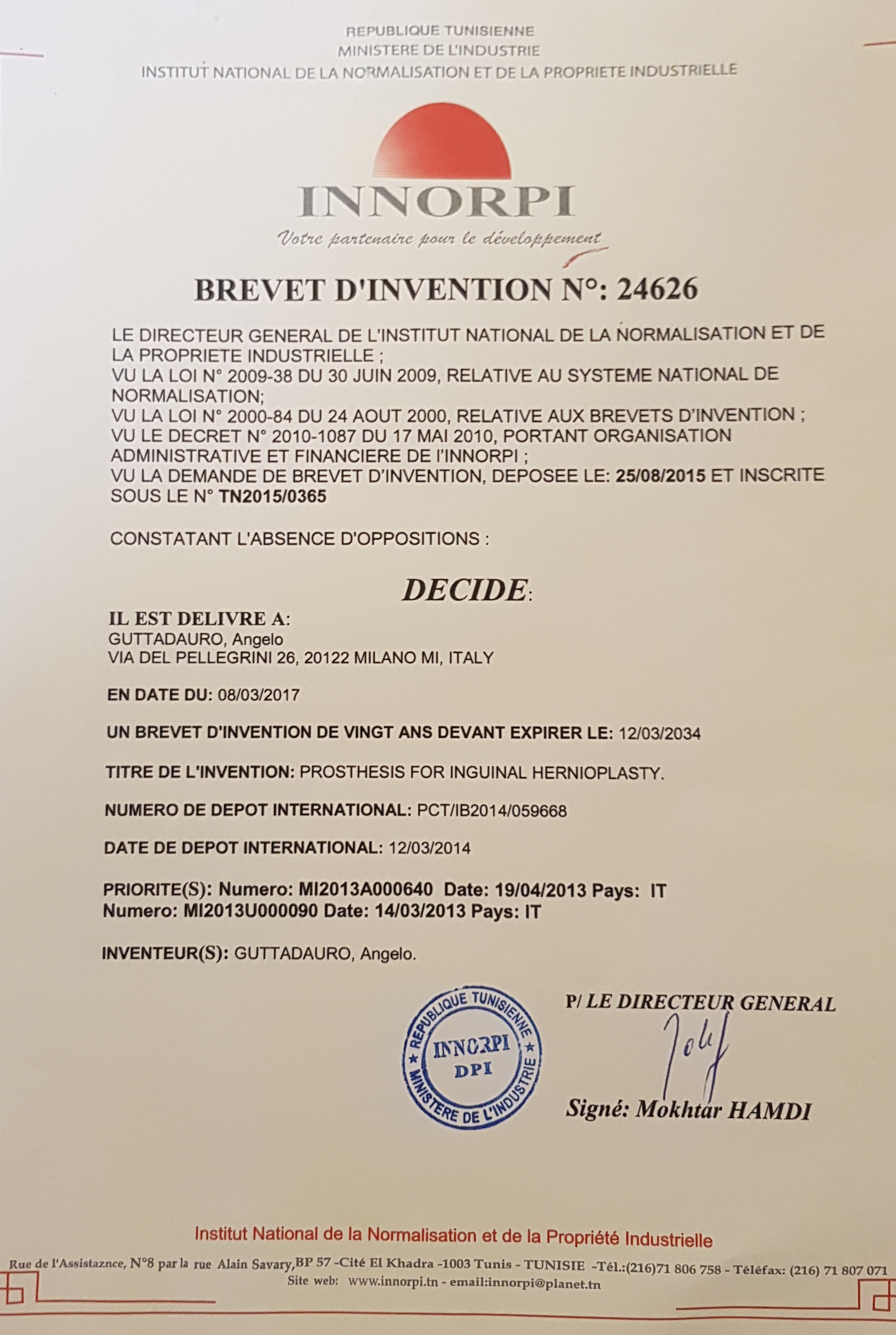 Guttadauro, A. (2014)Prosthesis for inguinal hernioplasty. Brevetto No. TN2015/0365.